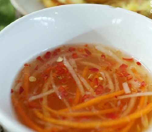 Cũng giống như cách làm nước chấm chua ngọt thông thường, tuy nhiên để hợp theo khẩu vị của người miền Tây thì nước chấm được pha hơi loãng. Để làm được bát nước chấm bánh xèo ngon bạn pha theo công thức này gồm: Tỏi ớt giải nhuyễn sau đó cho nước cốt 1 quả chanh vắt vào. Tiếp đến cho vào bát đó 3 muống canh đường, 3 muỗng canh nước mắm ngon, 1 chén nước lạnh rồi khuấy đều lên. Với nhiều người miền Tây lại không thích dùng nước lọc mà thay vào đó là nước dừa xiêm để tạo vị ngọt thanh tự nhiên cho bát nước chấm. Ngoài ra, để bát nước chấm thêm hấp dẫn, một số nơi còn để thêm củ cải đỏ, củ cải trắng bào sợi ngâm giấm (làm dua rối) cho vào nước mắm.