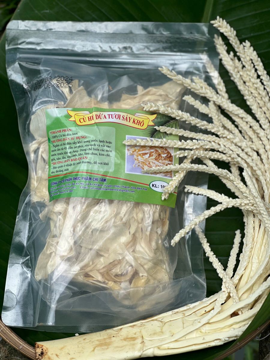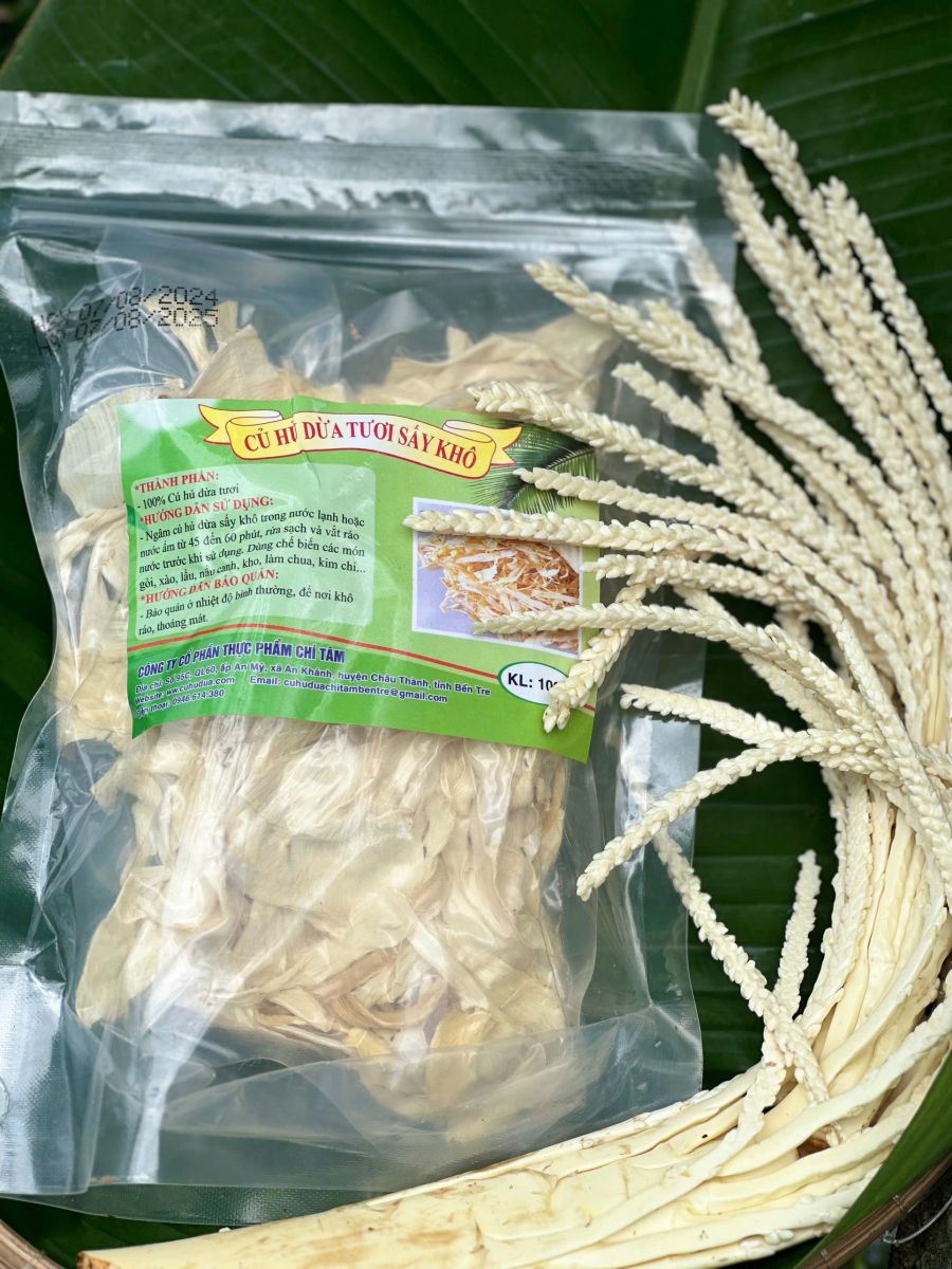 Củ hủ dừa sấy khô là một sản phẩm được chế biến từ củ hủ dừa tươi thông qua quá trình sấy khô, giúp bảo quản lâu hơn mà vẫn giữ được hương vị và các chất dinh dưỡng quan trọng.